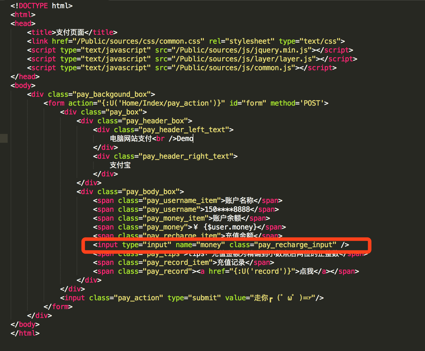 8、接下来是搭建支付页面以及支付记录页面,这两项操作就不在此进行赘述了。页面搭建的时候,记得预留下支付金融的input,该参数需要传递到服务器端进行处理。