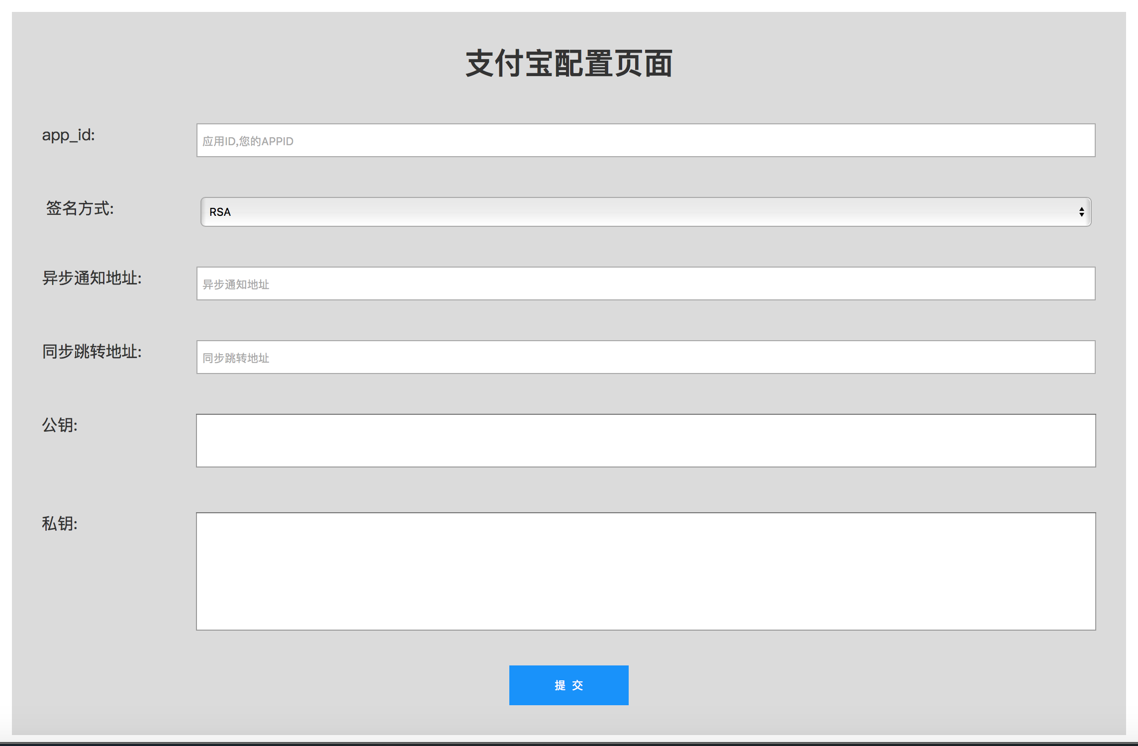 对支付宝配置信息采用存入数据的形式,下载源码后,填写好数据库连接信息,然后打开页面,填写完支付宝需要的配置信息,即可进行在线测试